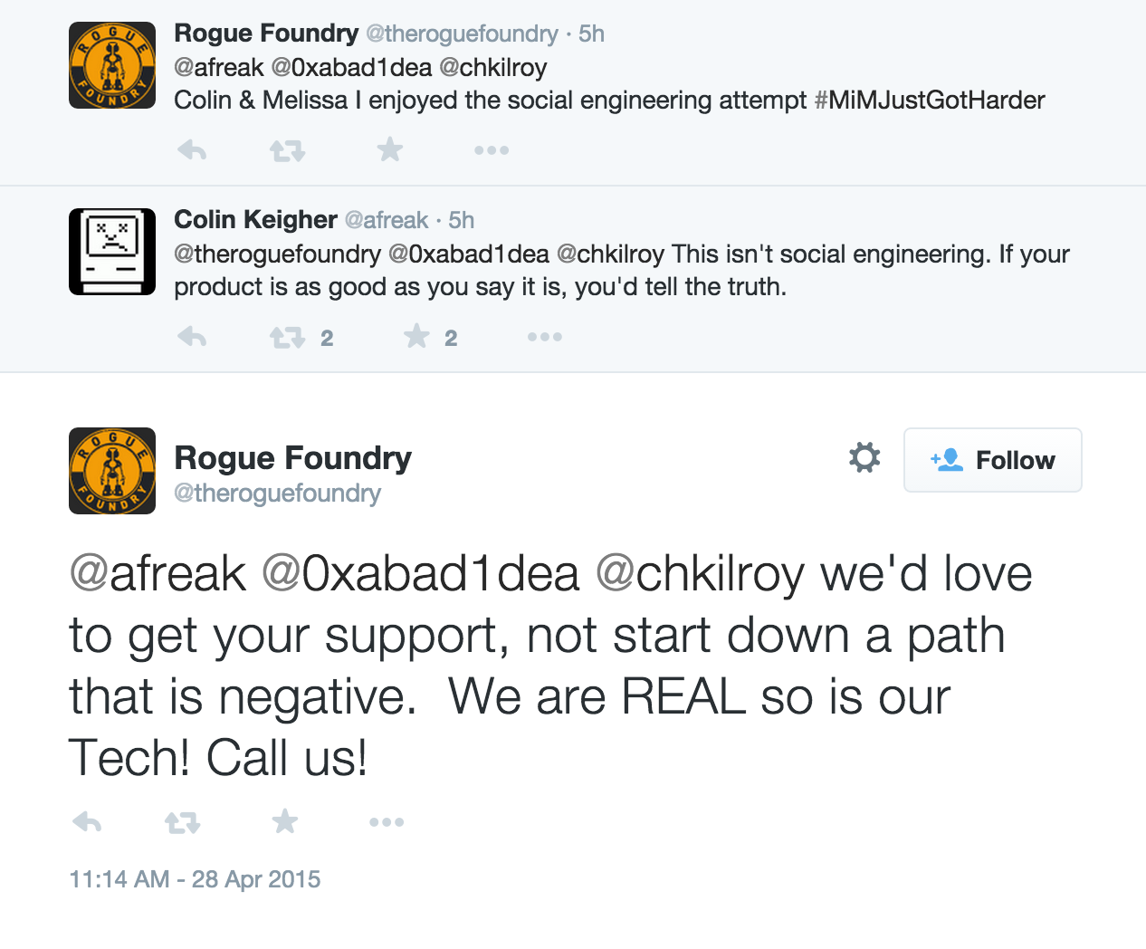 I'm still holding out for this being a hoax, a big joke, and that they're going to cancel the kickstarter any minute. It'd be quite the cute "lessons learned" about anonymity scams. However, I will be treating it from here on out as a genuine scam. (As of May 2nd, the kickstarter has been cancelled, after the strangest attempt to reply to this imaginable. Good riddance.)