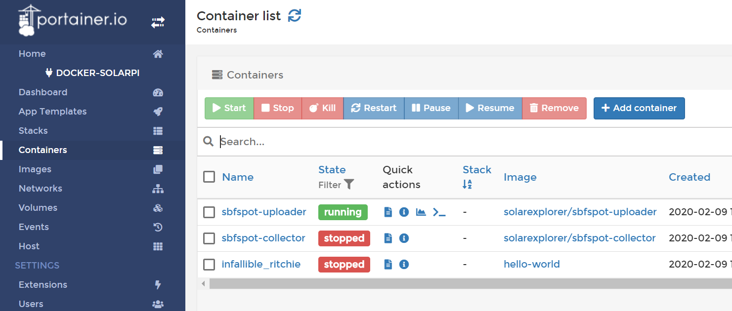 http://localhost:9000in your favorite web browser. Then login using default credentails (username:adminand password:admin) - Create a new container: