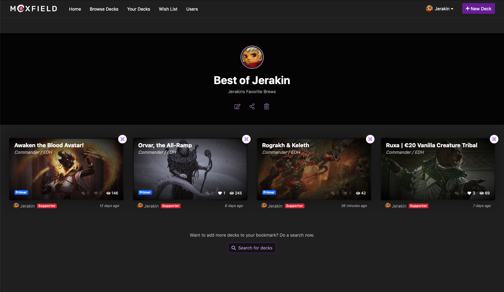 ===accordion ===panel: Booksmarks Bookmarks are a good way to show of a coolection of your favorite decks, or to create small hubs of your own. You can then share the bookmarks with friends!