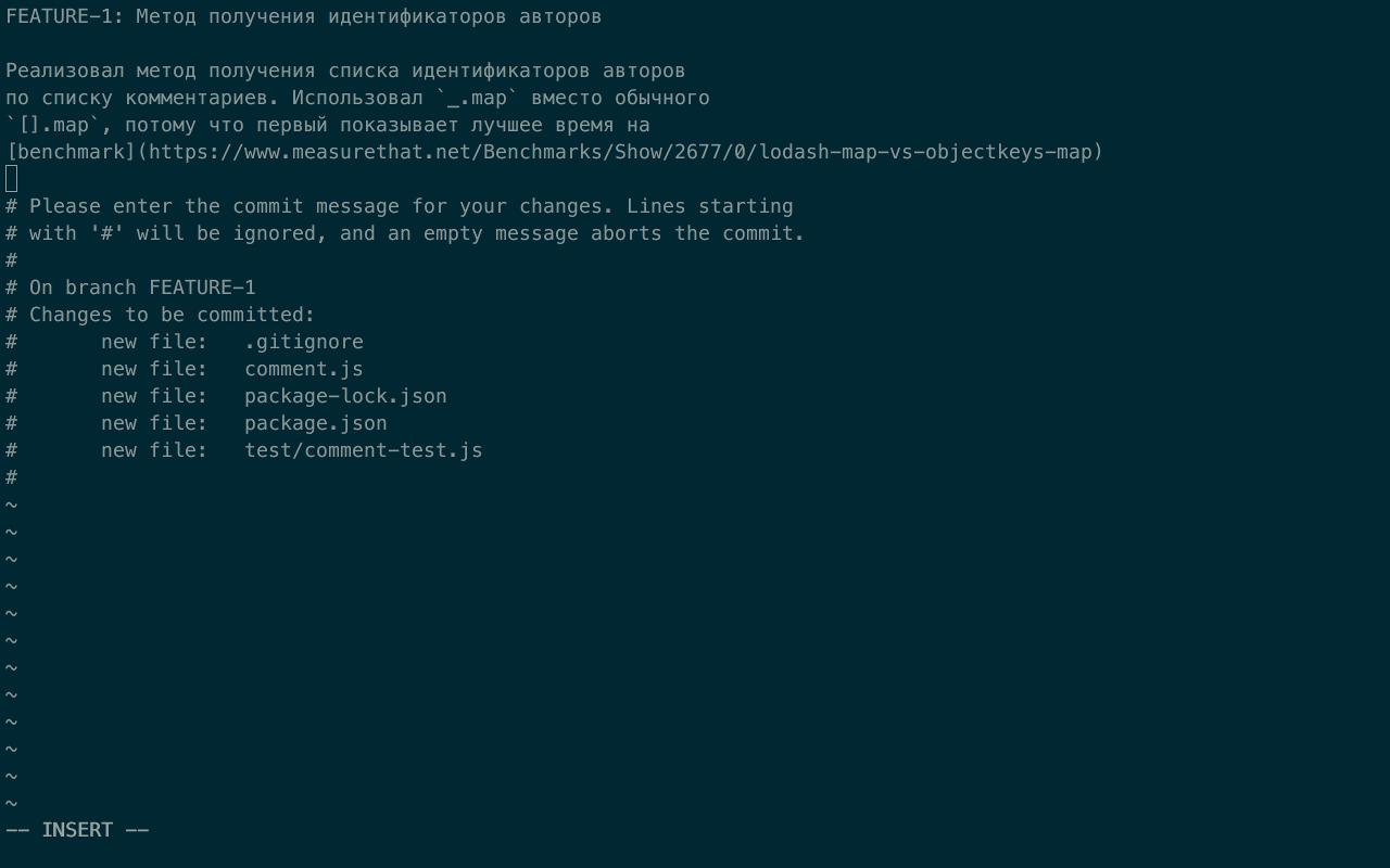 (пример описания пулреквеста с заголовком и телом. Для редактирования комментария я использовал консольный редактор vim)