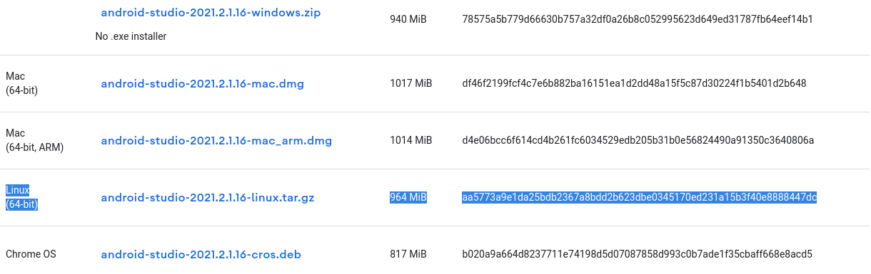 Open your browser and Download Android Studio for Linux. Visit the official page and then select the Tarball file.
