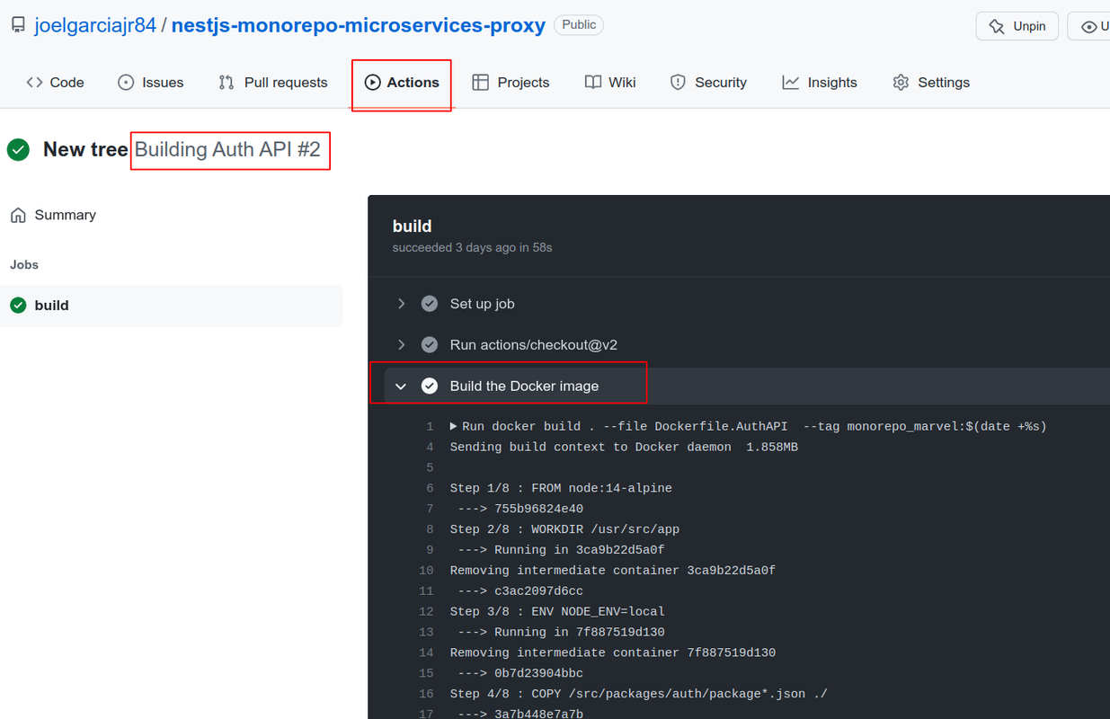 run: docker build . --file Dockerfile.AuthAPI --tag monorepo_auth:$(date +%s)What the code above does is, when whe push changes to the main branch at the path src/packages/auth (auth_api) the pipe will run, simple like that! :)