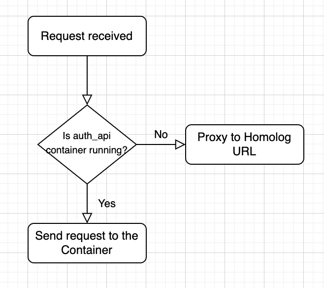 With the settings above when was necessary to interact with auth_api the reverse proxy will redirect for the service running on homolog server, so the only thing you need to do is to interact is with your work feature.