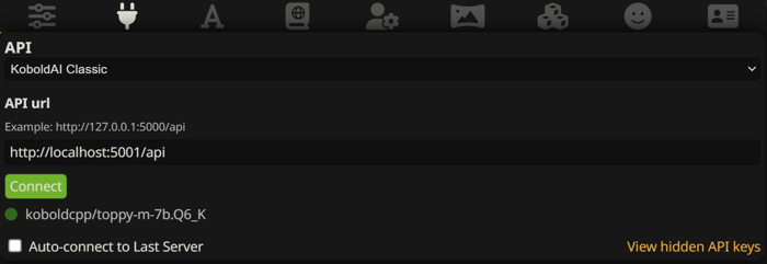 After that you can click ‘Connect’ with the correct kobold API link, and if everything went well, you’re now connected to the model!