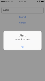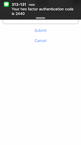 {"status":"success"}(2) Based on successful response, client mobile app presents the authentication code screen to allow the user to enter the SMS they will receive