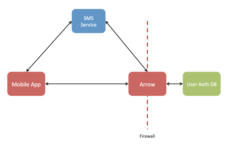 - Arrow sends this same authentication code to the SMS system along with the user's cell phone number that is stored with the user record