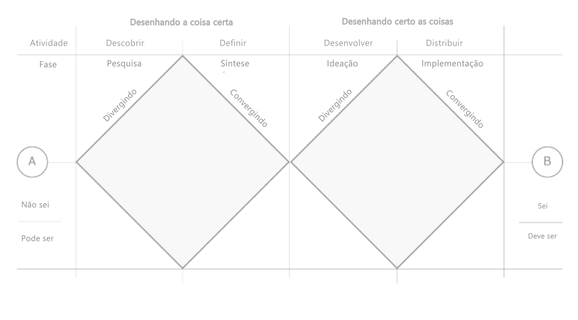 | Exploração do Problema | Sintese do Problema | Ideação + execução | Execução | Avaliação |