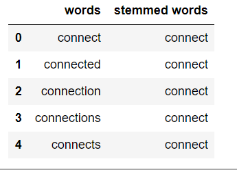 Stemming : Stemming is the process of getting the root form of a word. Stem or root is the part to which inflectional affixes (-ed, -ize, -de, -s, etc.) are added. The stem of a word is created by removing the prefix or suffix of a word. So, stemming a word may not result in actual words.