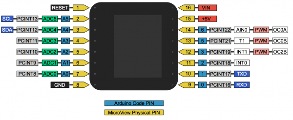 Small example of using the SparkFun MicroView library. Hardware: https://www.sparkfun.com/sparkfun-microview-oled-arduino-module.html