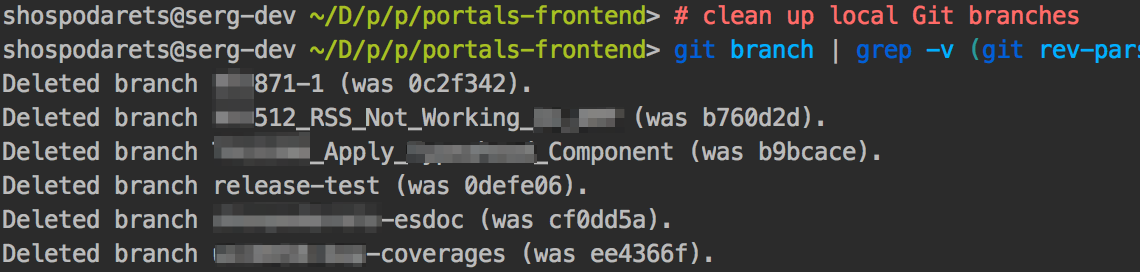 | git branch | grep -v (git rev-parse --abbrev-ref HEAD) | xargs git branch -D |