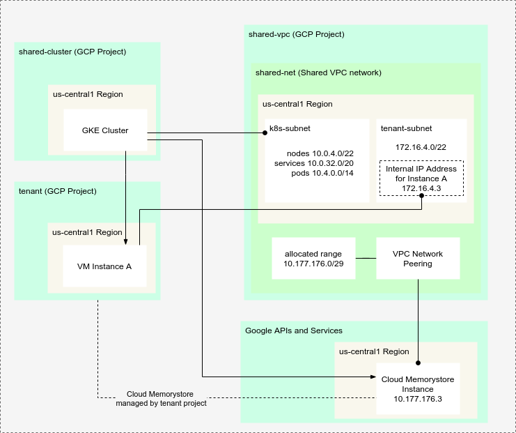 - https://cloud.google.com/memorystore/docs/redis/creating-managing-instances#creating_a_redis_instance_with_a_shared_vpc_network_in_a_service_project