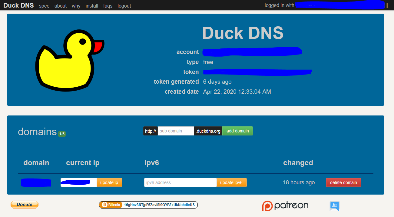 Please go ahead and donate to DuckDNS' patreon if you enjoy their services.