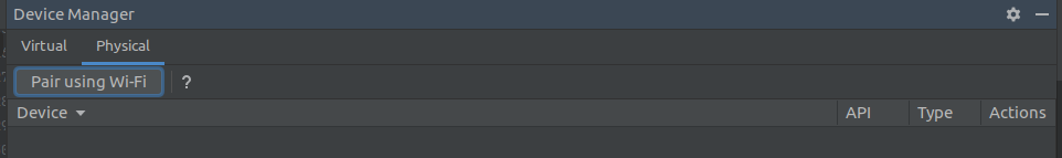 Device manager -> Physical -> Pair using wifi -> You can see one QR code in popup